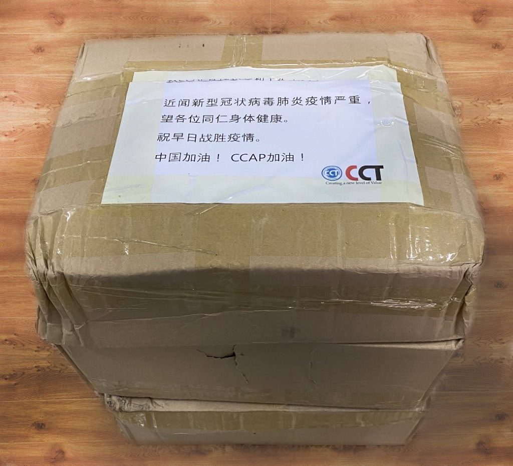 2020年2月27日,中汽认证国际事业部收到了来自合作方韩国CHINA CERTIFICATES TECHNOLOGY公司(以下简称韩国CCT)的问候和支持——一封精炼且暖心的慰问信和三箱共计1000只KF94口罩。