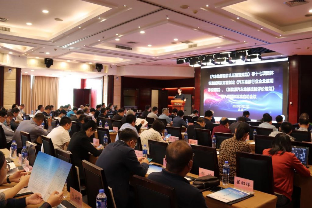 2020年9月25日,中机寰宇认证检验有限公司(中汽认证中心有限公司)受中国汽车维修行业协会技术和标准化委员会委托承办的《汽车维修配件认证管理规范》等17项团体标准新闻发布和《新能源汽车维修技能评价规范》等八项标准立项启动会在北京召开。出席本次会议的有中国汽车维修行业协会技术和标准化委员会秘书长刘瑞昕、中机寰宇认证检验有限公司党委书记、董事长付志坚,新能源汽车主机厂、总成零部件生产单位、汽车经销、汽车维修、认证机构、保险机构、职业院校、协会各分支机构、新闻媒体等单位的领导和专家代表共计120余人。