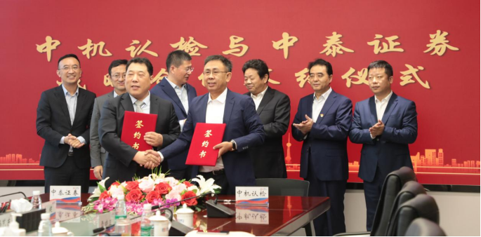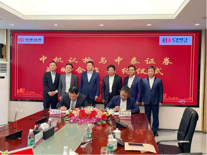 中机认检总经理、董事牛海军与中泰证券董事、中泰国际董事长冯艺东分别代表双方签署协议。