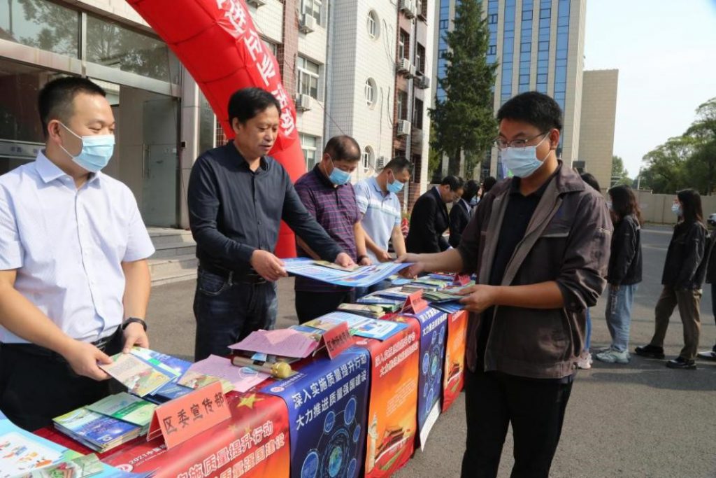 2021年9月23日,由北京市延庆区市场监督管理局(以下简称“市场监管局”)主办、中机科(北京)车辆检测工程研究院有限公司(以下简称:中机检测)协办的“质量月”主题宣传进企业活动在中机检测举办,深入实施质量提升行动,大力推进质量强国建设,进一步做好“质量月”主题宣传,营造文明诚信、经营良好氛围,推动公司高质量发展。延庆区区委宣传部副部长罗坤、区住建委副主任杜颖荣、区经信局副局长赵瑞琴,市场监管局副局长王留富、副局长郭怀满,中机检测党委书记、总经理刘中星,美正检测技术负责人魏丹丹,博洁检测质量负责人朱爱新参加了本次活动。