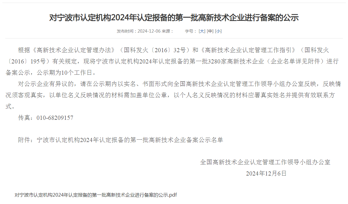 近日,中机博也顺利通过宁波市2024年第一批“高新技术企业”认定。国家高新技术企业认定是对企业科技实力的国家级认可,有助于提高企业科技研发管理水平,提升核心竞争力和品牌形象。