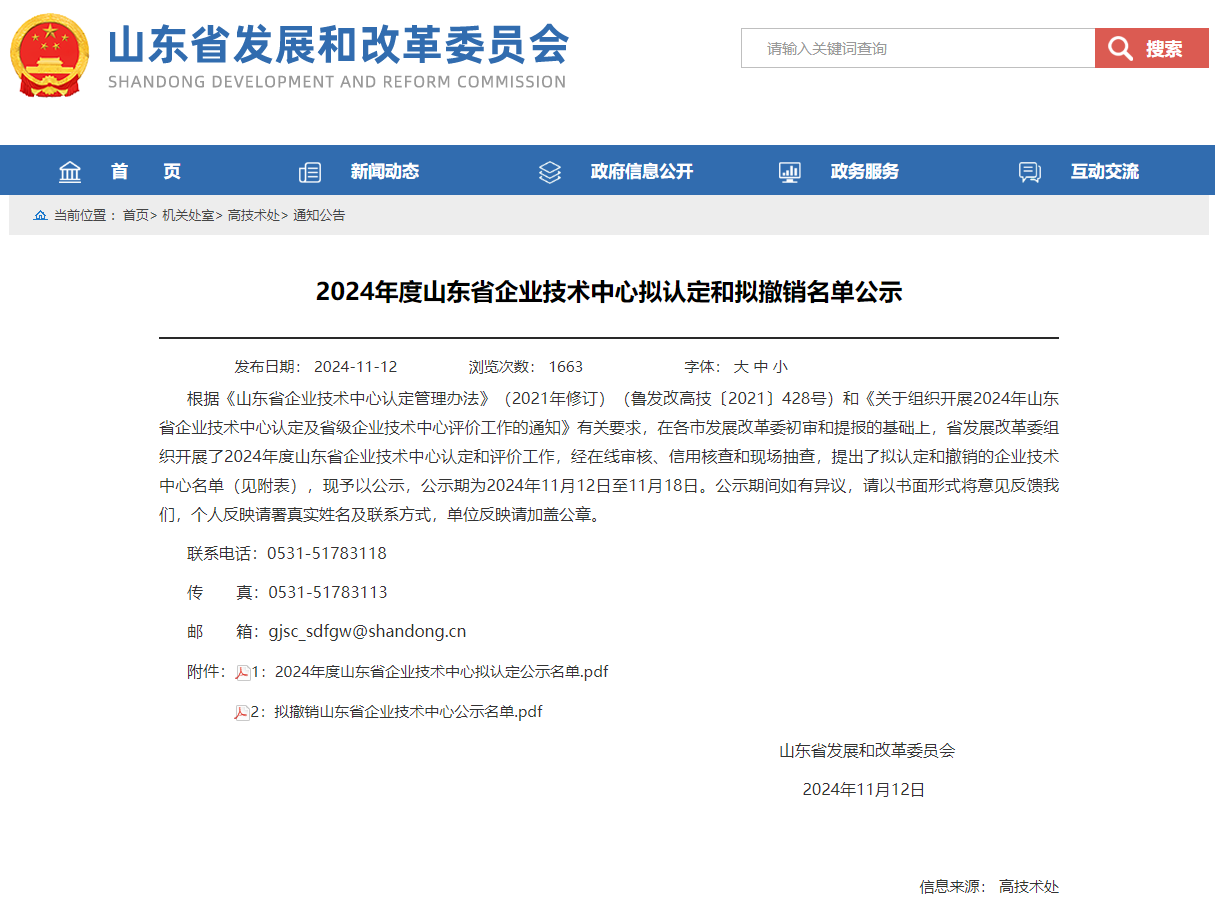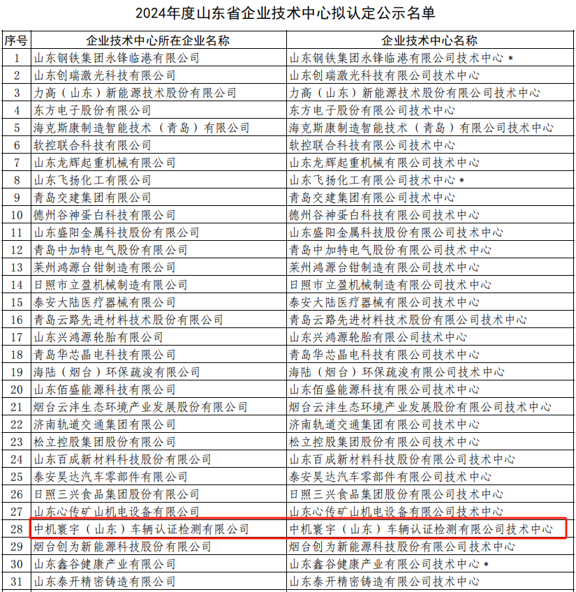近日,山东省发展和改革委员会发布了《2024年度山东省企业技术中心拟认定和拟撤销名单公示》,中机车辆技术中心被山东省发改委认定为山东省企业技术中心。