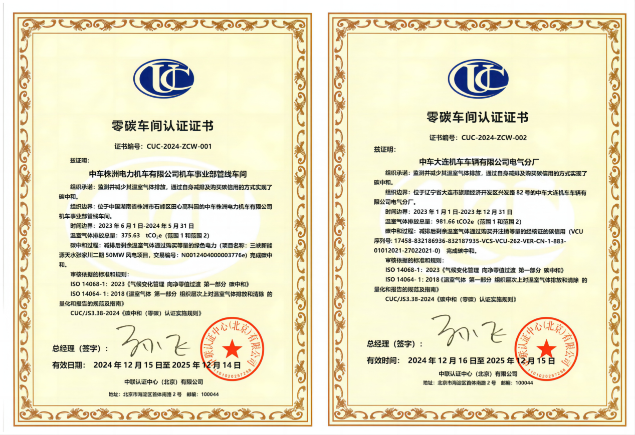 近日,中联认证为中车株洲电力机车有限公司机车事业部管线车间以及中车大连机车车辆有限公司电气分厂颁发了公司首批零碳车间认证证书。首批零碳车间认证证书的颁发是对企业低碳转型成果的高度认可,在零碳车间的基础上,企业将继续探索更高效的碳减排路径,为后续持续实现“双碳”目标添砖加瓦。