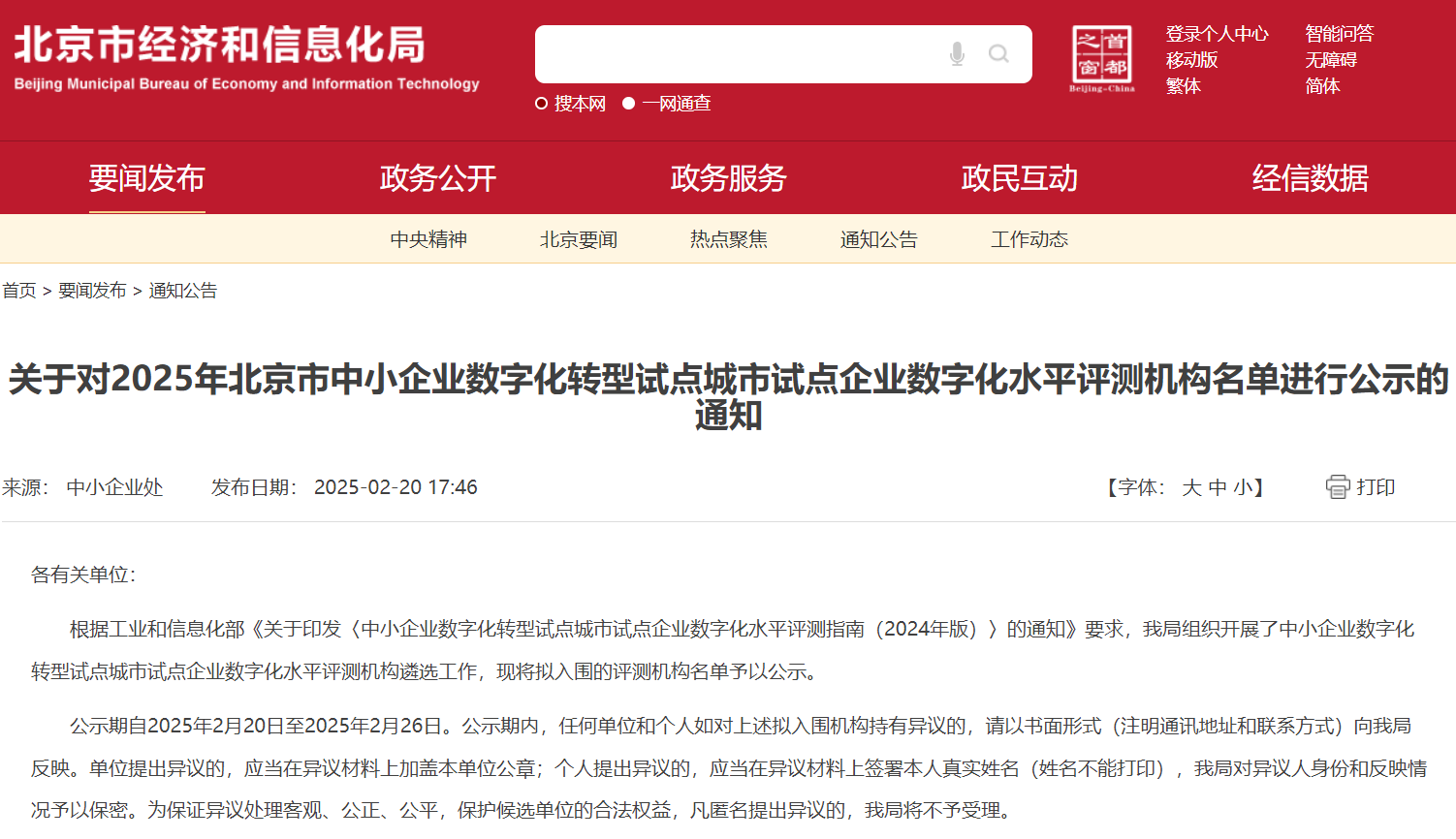 此次入选北京市中小企业数字化转型试点城市评测机构名单,中联认证严格按照《中小企业数字化转型试点城市试点企业数字化水平评测指南(2024年版)》的要求,为北京市中小企业提供专业的数字化水平评测服务。