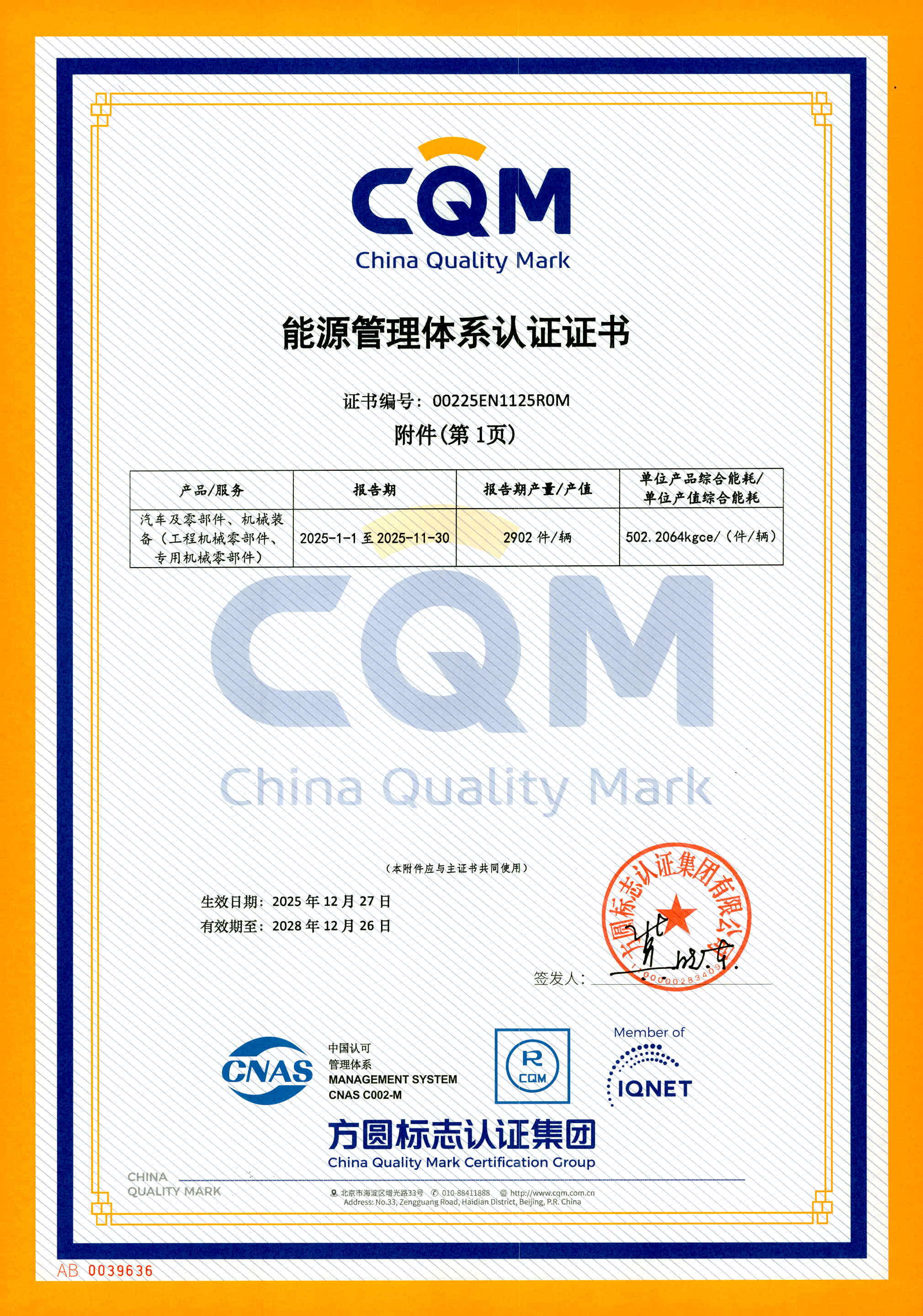 能源管理体系认证是基于国际标准ISO 50001的权威认证,它不仅证明公司在能源使用、消耗及效率等方面的管理措施和实践均达到标准水平,更是对公司长期以来节能减排、提高能源绩效的充分认可。