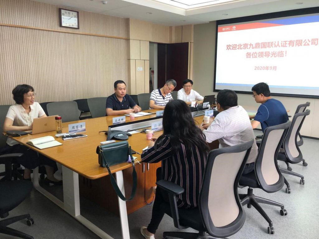 2020年9月11日,北京九鼎国联认证有限公司(以下简称“北京九鼎”)总经理肖飞一行到访中联认证。中联认证总经理马麟、副总经理王一帆、张锋、总工程师尚建珊和技术总监周育清等参加会议,会议由中联技术总监周育清主持。