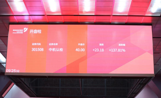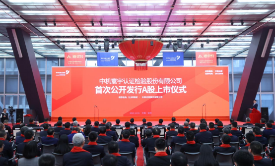 12月1日,中机寰宇认证检验股份有限公司(股票简称:中机认检,股票代码:301508)正式登陆深交所创业板。中国机械总院党委书记、董事长王德成,深圳证券交易所党委委员、副总经理彭明,北京市大兴区区委常委、区政府党组副书记、常务副区长刘洋,中共德州市委常委、德州天衢新区党工委书记祁小青,国务院国资委改革局改制上市处处长王丽萍,中机认检党委书记、董事长付志坚,中泰证券董事、总经理冯艺东、股东代表、行业协会领导、客户代表和职工代表等共180余人出席上市仪式,共同见证这一历史时刻。