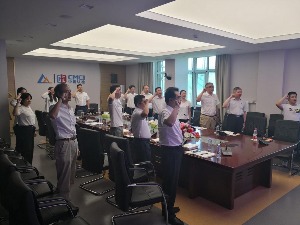 2019年7月1日,中机认检党委直属支部组织开展“今天是我的政治生日”主题党日活动,庆祝中国共产党建党98周年。深入学习贯彻习近平新时代中国特色社会主义思想和党的十九大精神,认真落实全面从严治党要求,持续推进“两学一做”学习教育常态化制度化,全面对接“不忘初心、牢记使命”主题教育,充分发挥党组织的战斗堡垒作用和广大党员的先锋模范作用,切实加强党的执政能力建设,始终保持党的先进性和纯洁性,激发党员的积极性、主动性和创造性,提醒党员时刻不忘身份、不忘初心、牢记使命。会议由支部书记姜旭主持。