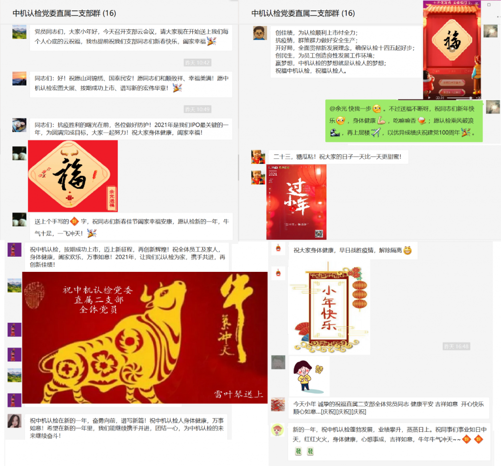 2021年2月4日,中机认检党委直属二支部创新主题党日形式,在新春佳节来临之际在支部微信群中召开了以“抗疫情、传爱心、我为认检人送祝福”为主题的支部全体党员云会议。该“主题党日”活动旨在加强党员思想信念教育、有效开展党建工作,更好地发挥基层党支部践行党员先进性的战斗堡垒作用。