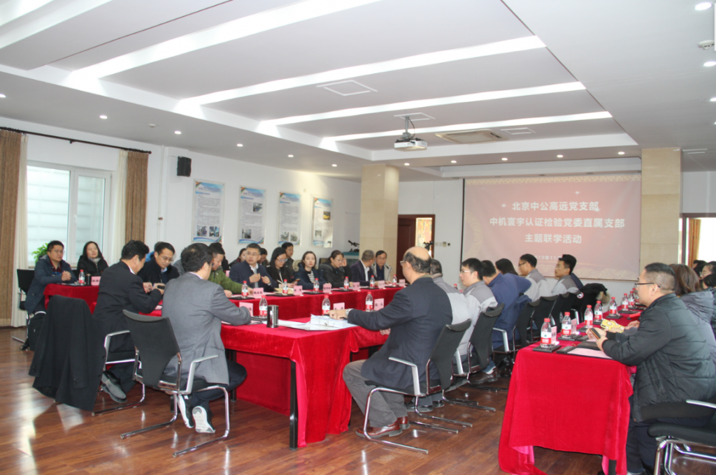 为深入学习贯彻党的十九大精神和深入开展“不忘初心、牢记使命”主题教育,创新党建工作模式,11月28日中机认检党委直属支部与北京中公高远汽车试验有限公司党支部开展了以“互联互通 并肩共进”为主题的交流活动。中机认检董事长、总经理付志坚,党委委员、副总经理刘中星,总会计师魏永斌,党支部书记、综合事务部部长姜旭,中公高远公司董事长、党支部书记叶慧海及双方支部党员共40余人参加了此次会议。