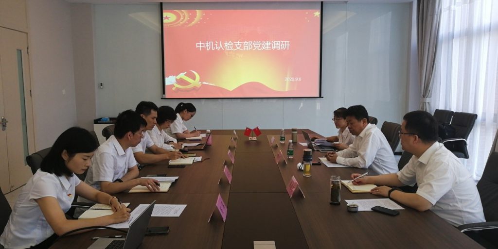 2020年9月8日,中机认检党委书记、董事长付志坚,党群工作部副部长(主持工作)雷叶琴赴中机智检党支部进行调研,听取中机智检党支部党建工作汇报,并与党员干部进行谈话交流。