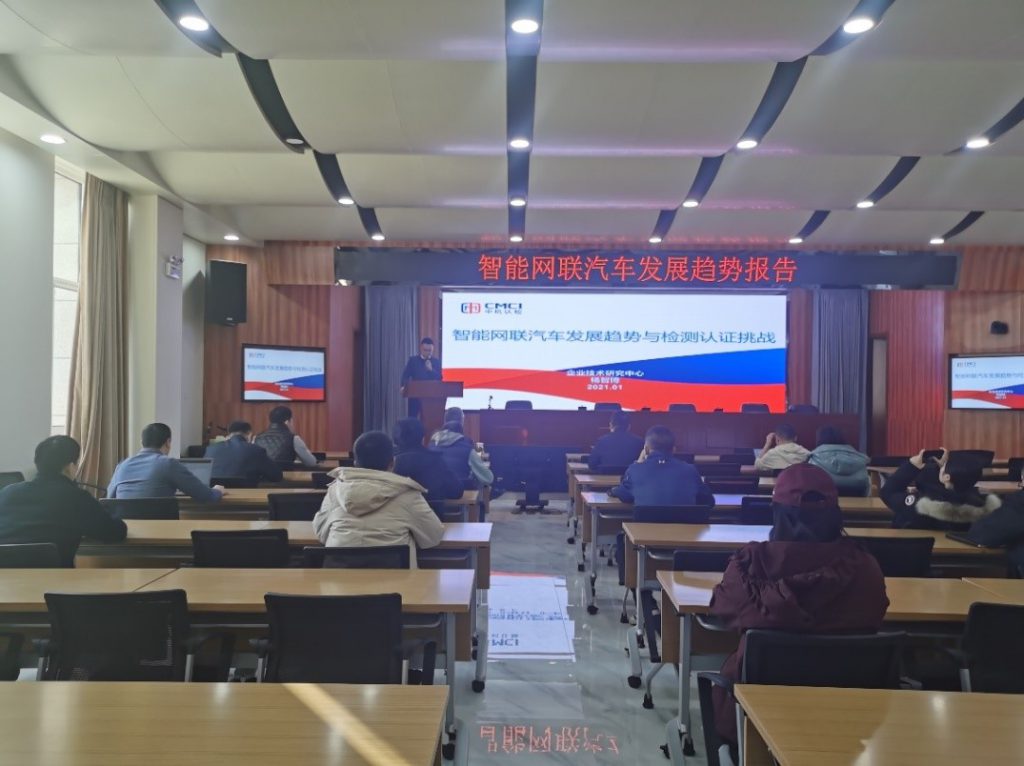 会上,杨智博同志向党员们深入解读了智能网联汽车国内外发展技术路线、技术特点及发展趋势,结合中机认检科研发展规划,向与会同志宣贯中机认检开展智能网联汽车认证检测业务布局的必要性。通过梳理智能网联汽车标准体系、认证检测现状,为今后科研重点及业务增长方向提供参考。