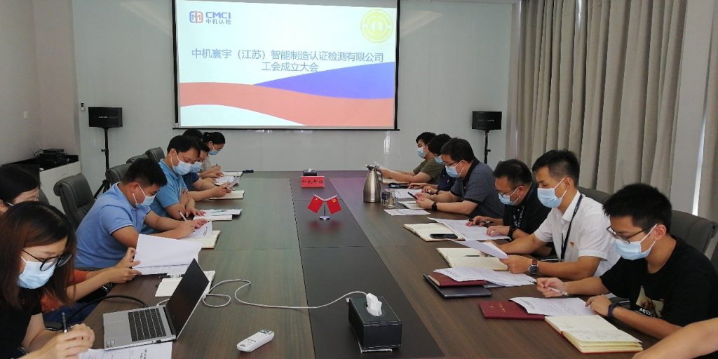 中机智检工会成立大会在《国歌》声中开幕,张海潮同志宣读了《关于组建中机寰宇(江苏)智能制造认证检测有限公司工会请示的批复》、《中机寰宇(江苏)智能制造认证检测有限公司工会成立大会筹备工作报告》、《工会第一次代表大会资格审查报告》等,大会表决通过了《中机寰宇(江苏)智能制造认证检测有限公司工会第一届选举办法》,通过差额投票选举产生3名工会委员会委员,等额选举产生3名经费审查委员会委员、3名女职工委员会委员。经工会委员会委员、经费审查委员会委员、女职工委员会委员第一次全体会议表决选举,张海潮同志当选为中机智检工会主席,张海英同志当选为女职工委员会主任,徐英同志当选为经费审查委员会主任。