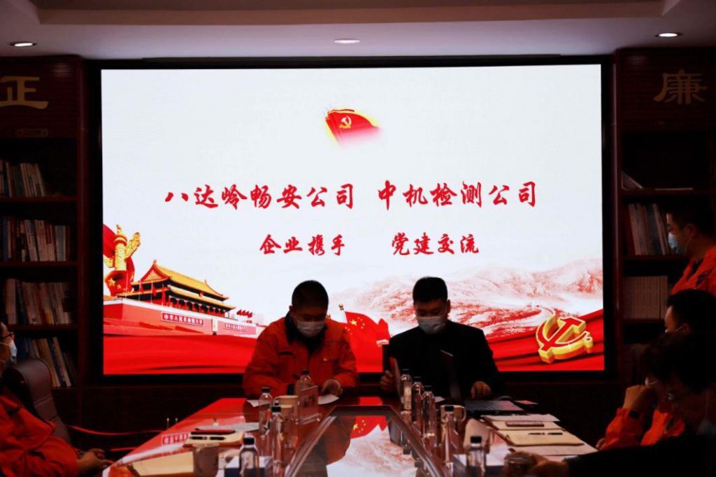 12月7日,中机检测第二党支部与北京文旅集团八达岭畅安公司党支部(以下简称畅安公司党支部)携手开展 “共享资源、共谋发展,同心逐梦迎冬奥”党建交流活动,进一步发挥基层党组织党建工作优势、增强基层党组织活力、推进党建工作高质量创新发展。延庆区质检局张子健主任,中机检测副总经理陈宝强、贾佳奇,北京文旅集团总工程师、八达岭冬奥临时党支部书记张洪波,北京文旅集团党群工作部部长康卫红参加此次活动。会议由畅安公司党支部书记张伟主持。