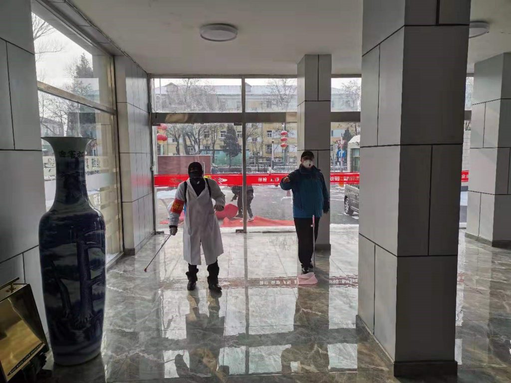 正值春节假期值班时,韩春清突然接到了防疫工作任务,随后他快速响应,积极应对。2月初,全国防疫物资告急,确诊病例正处于持续增长期,谁也无法预知身边是否有病毒携带者,但他作为一名共产党员,积极发挥带头作用,冒着被感染的风险,他带领副部长高宇、胡革、屈立华及其他员工逆流而行,奔走于延庆、怀来各药店挨家挨户询问并采购防疫物资。同时通过打电话和发动亲戚朋友的力量,在大家的共同努力下,终于采购到了第一批宝贵物资(84消毒液5箱、测温枪4个、口罩1100只、乳胶手套500副)。他迅速安排员工对延、怀两地办公楼区域、餐厅、康庄试验区等重点区域进行每天三次的消毒,确保无死角全覆盖,坚决遏制病毒的传播途径。公司正式复工复产前,2月6日,他提前组织部门人员召开第一次防疫工作会,制定了防疫流程和制度。根据试验保障部分布广、区域大的特点,采用责任人分区负责制,韩春清超前谋划、果断决策、防患于未然。
