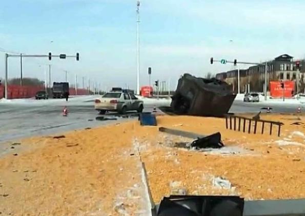 无独有偶,2019年12月15日3时许,哈尔滨世茂大道与智谷大街交口处,一辆拉运玉米的大货车与一辆拉运碎石的大货车发生相撞事故。其中,运碎石的大货车驾驶室与车身发生了分离,驾驶室被甩出10余米远,驾驶员和驾驶室一同被甩了出去;拉运玉米的大货车后部车体严重损坏变形,车厢内装载的大量玉米散落街头。事故造成运碎石的大货车驾驶员不幸遇难。