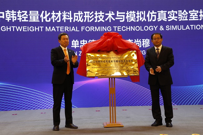 会上,单忠德副总经理和李尚穆副院长共同为双方共建 的“轻量化材料成形技术与模拟仿真实验室”揭牌。